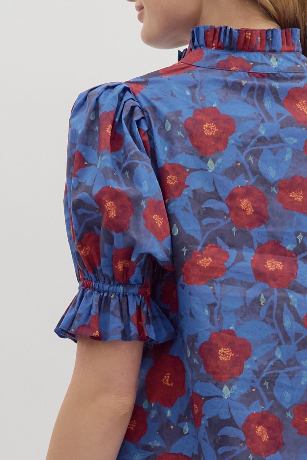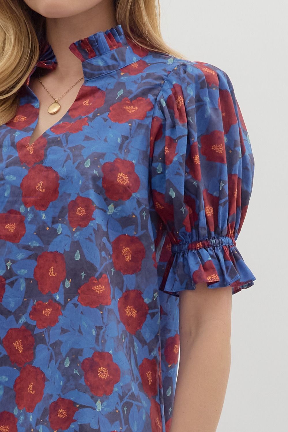Introducing the Dara Top -- your new go-to for effortless charm! This delightful top features a gorgeous floral pattern and a playful pleated ruffle V-neck band collar that adds a touch of whimsy, while short puff sleeves keep things fun and flirty. Comfortable, cute, and ready for anything your day brings!