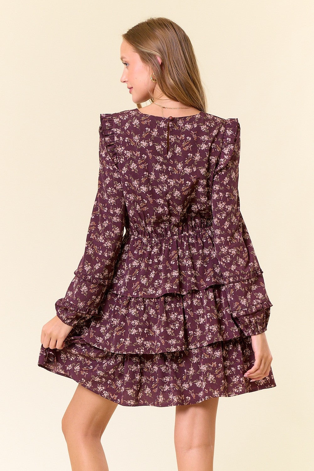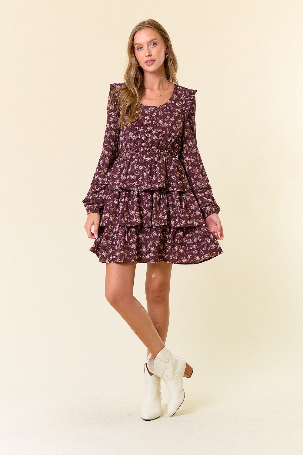 Meet our Mavis Floral Tiered Dress! With a beautiful floral print, puff sleeves, and a tiered ruffle design, this dress is perfect for fall.